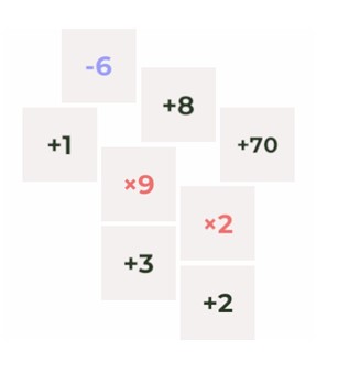 It features a grid or a set of scrambled numbers that must be arranged, combined, or manipulated according to specific rules.